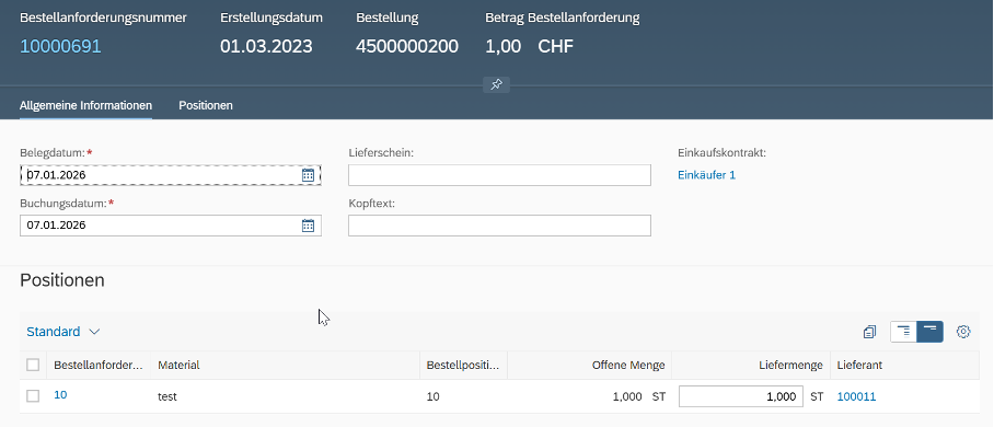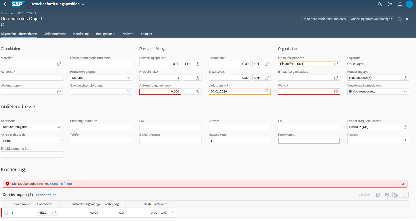 Bestellanforderungen direkt erfassen